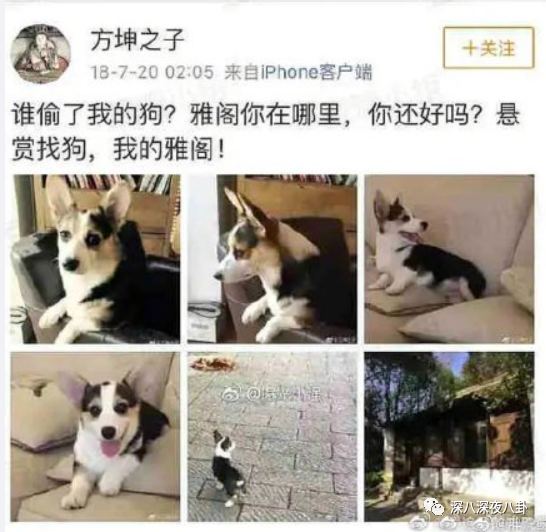 后来狗丢了,男方气地发微博悬赏找狗。当然了,男方后来把这微博删了。