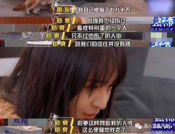 不晓得郑爽是有心还是无意,在综艺里也大聊过自己被骗钱的事情。这番言论,进一步发酵成为对张恒的网暴。但她这番话,感觉真心实意觉得自己被骗了。