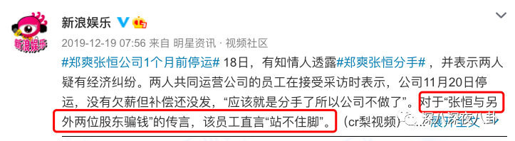11月,张恒从公司辞职。紧接着网上就出现了张恒与另两名股东合起伙来骗郑爽的钱这个传闻。连被遣散的员工都觉得这个说法站不住脚。