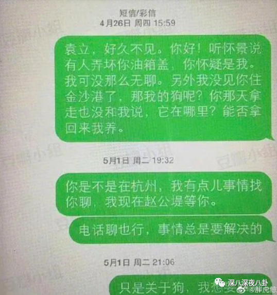疑似一组质疑偷狗的短信流出,当然了这种短信截图造谣的成本很低的。