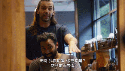 经过发型师的一番改造,他好像完全变了一个人。