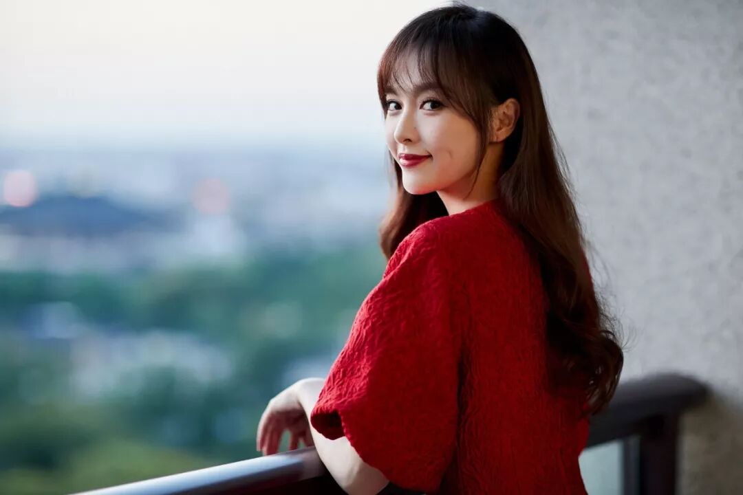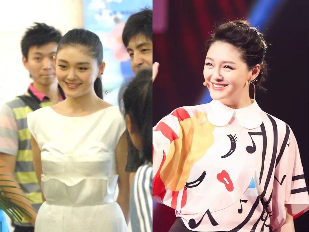 杨紫故意把前额的刘海打造的很蓬松,视觉上把整个头顶拉伸,看起来协调多了。
