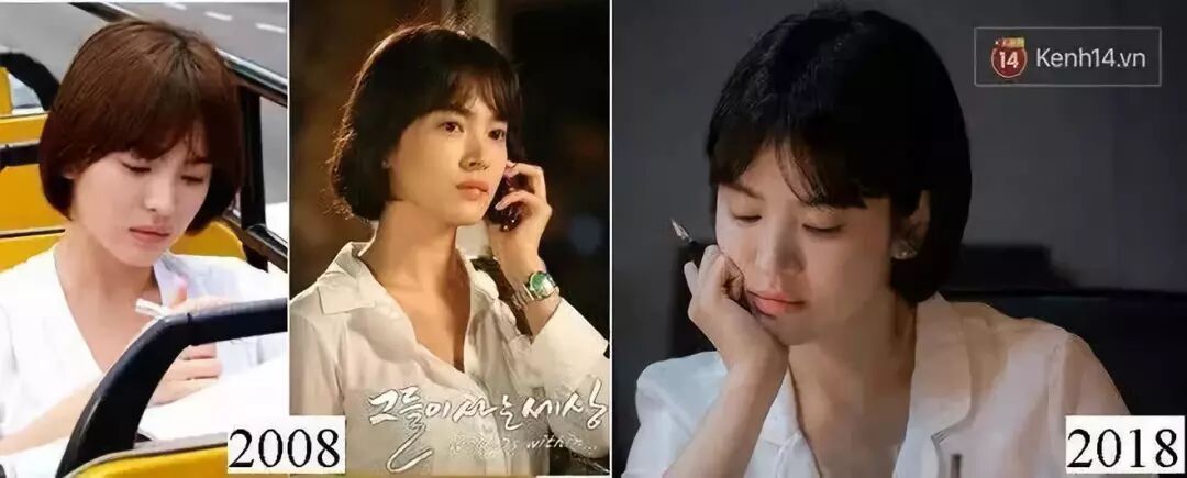 镜头下,宋慧乔一头短发,清纯可人的样子和十年前丝毫没有区别。