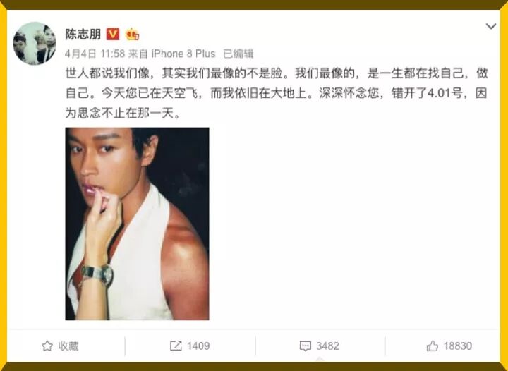 说起来陈志朋这么招黑,还有个原因,其实和张国荣也有一点关系。