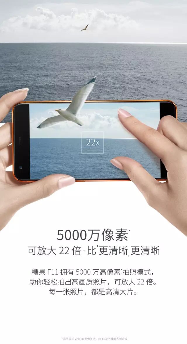 糖果F11自7月22日发布起市场反馈热烈。5000万像素!可放大22倍!比更清晰更清晰!这款超强黑科技神器简直就是“行走的拍照神器”。