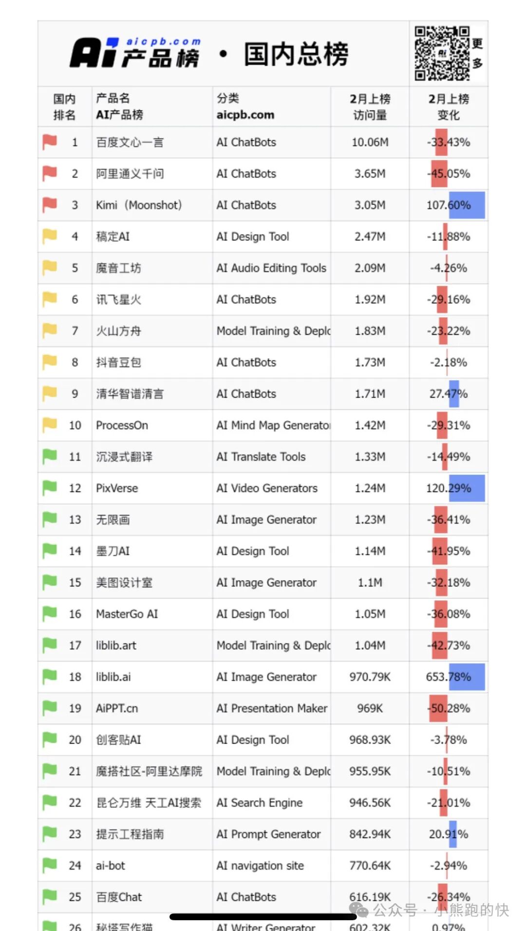 一周前我自己发布了AI 产品榜单,看到它月访问量环比涨了106%,我以为只是一个小小上升期!