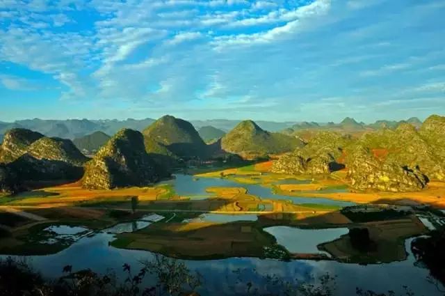 如此这般美景,融合了独特的喀斯特地貌、青山绿水、蓝天白云,自成仙境,简直就是普者黑风景的宣传片!