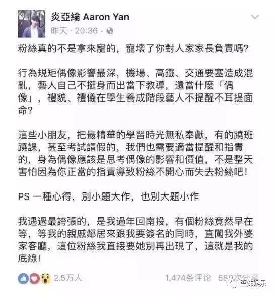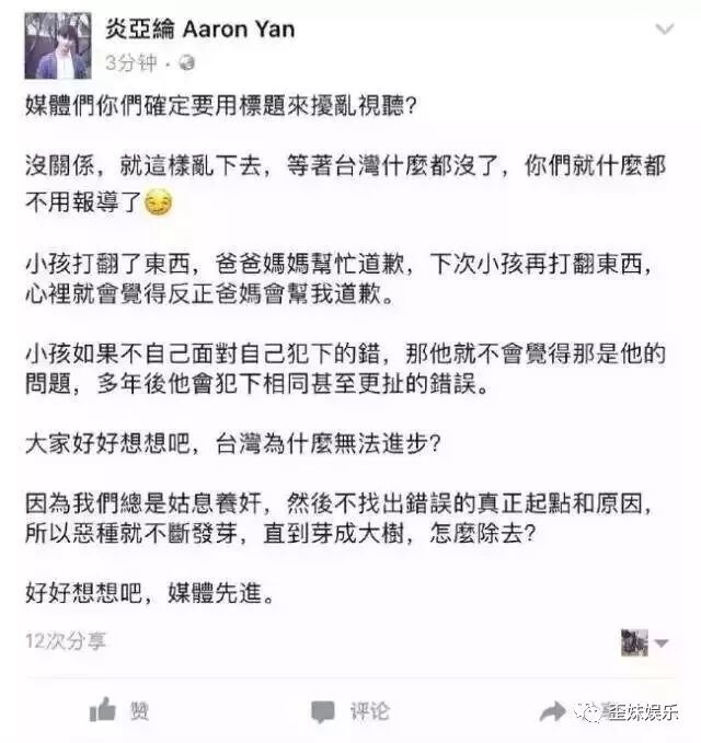 炎亚纶还奉劝他们“别每天只想着自己的外表如何如何