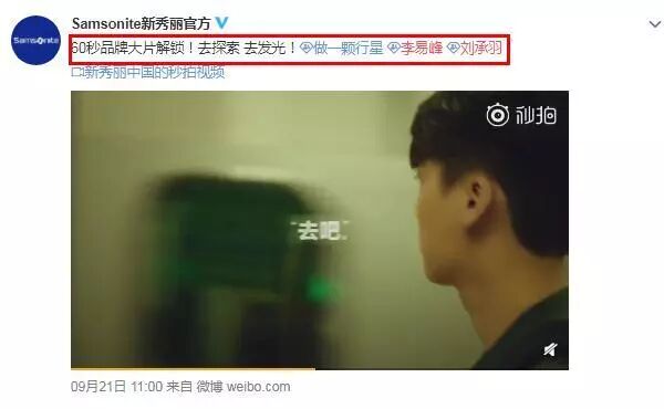 此前李易峰就和刘承羽一起为新秀丽品牌拍摄了短片:去吧,做一颗行星。