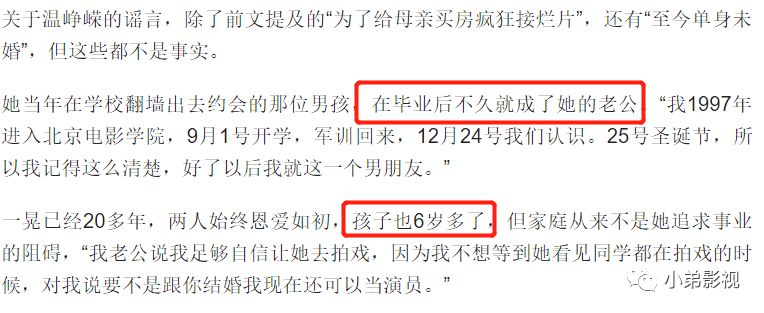 温峥嵘否认自己是单身,她表示大学毕业后不久就与男友结婚,与此同时,温峥嵘还澄清了为买房拍烂戏的传言。