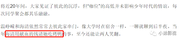 温峥嵘还在这次的采访中回忆了大学中的友情,自曝海清用献血的钱请她吃烤鸭。