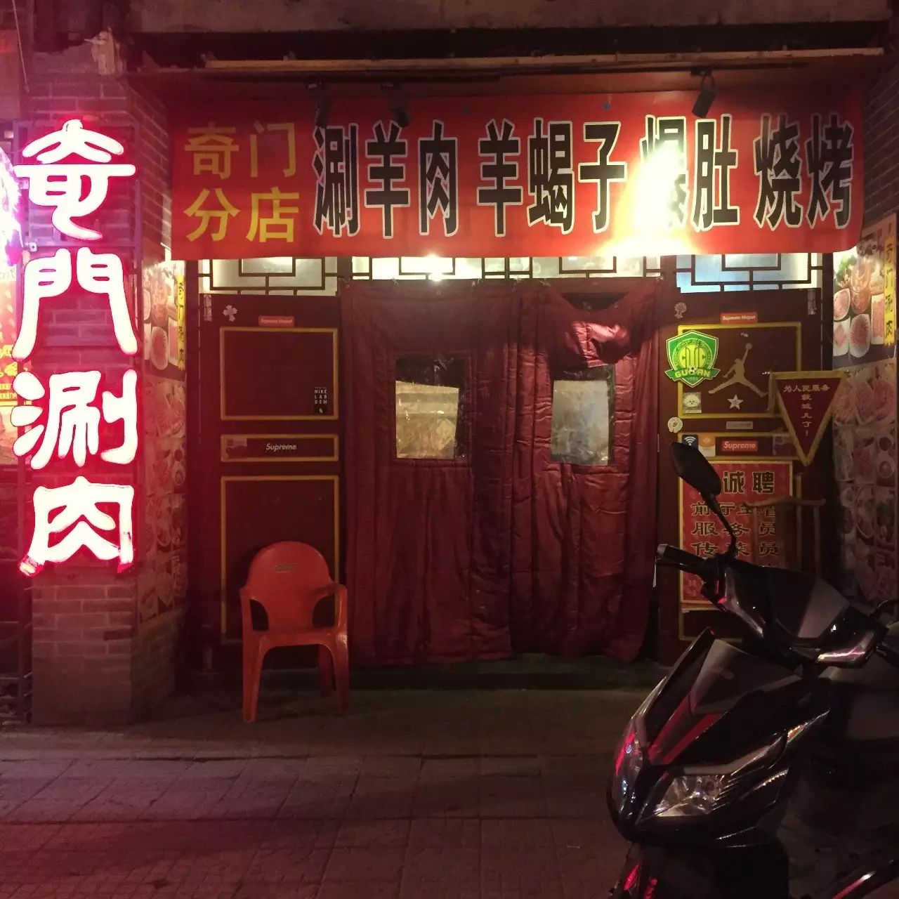 当看到写着“涮羊肉 羊蝎子 爆肚 烧烤”如此接地气的门面时,我实在想不到这家看着特儿北京的火锅店和潮流有什么关系。