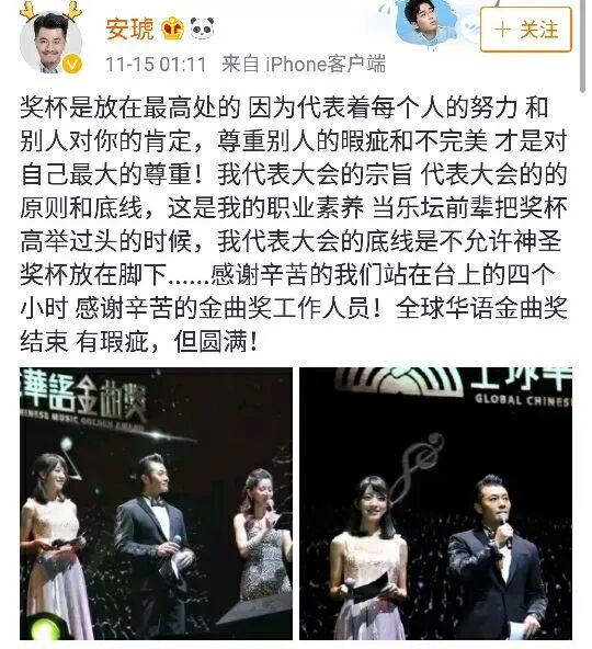 所以,在看到奖杯放在地上之时,除了主持人的专业素养,还有歌手身份赋予他责任感,或许也是基于此,事后他才会有感而发: