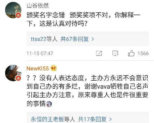 获奖嘉宾都直接在舞台上怼典礼乱了,这个时候,典礼的秩序与体面往哪放?话筒在“我”手上,责任就在“我”手上,“我”必须得担。