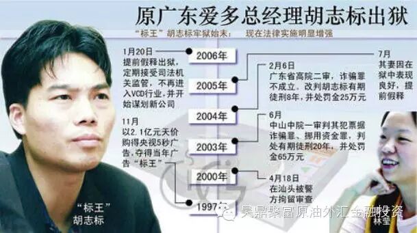 1995年7月20日,只有26岁的胡志标成立了公司,开始生产VCD。他觉得要想把品牌做响,就得靠广告。那就是先要找一个最有名的人,然后就要找最强势的媒体。当时他在广州,了解到的大明星就是以功夫片走红的成龙,而成龙一开价就是450万,胡志标硬咬牙给了。当时爱多VCD的广告语也很简单,就是“爱多VCD,好功夫。”