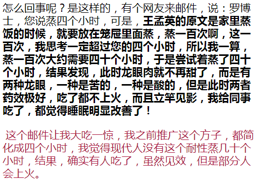 可是,这位朋友说蒸四十个小时后,龙眼肉就不再甜了,也不上火,药效极好。
