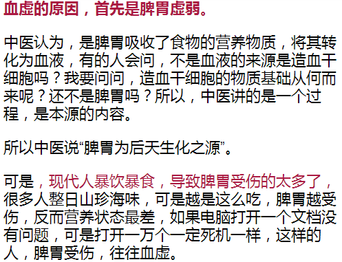 我想,很多人会有这些症状的,如果真的有,就要考虑,自己是否血虚了。可是,大家不禁要问,怎么会有这么多人血虚呢?血虚的原因是什么呢?