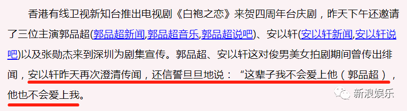 但对于绯闻,当事人依然是否认的。安以轩出面澄清,表示一切只是为戏宣传。