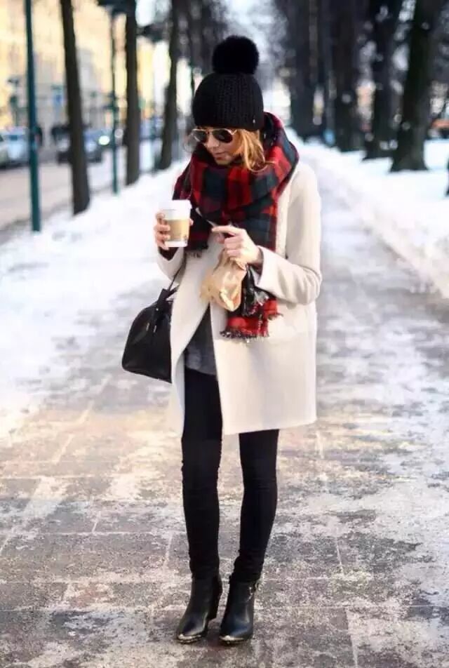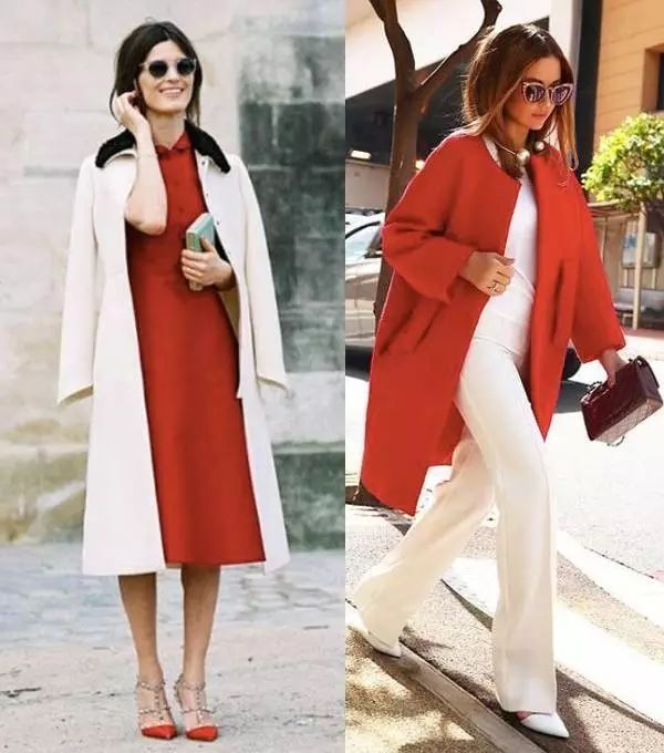 白与红的碰撞在冬天的搭更带给人温暖与浪漫,随意的将外套搭在肩上,想不时髦都难。
