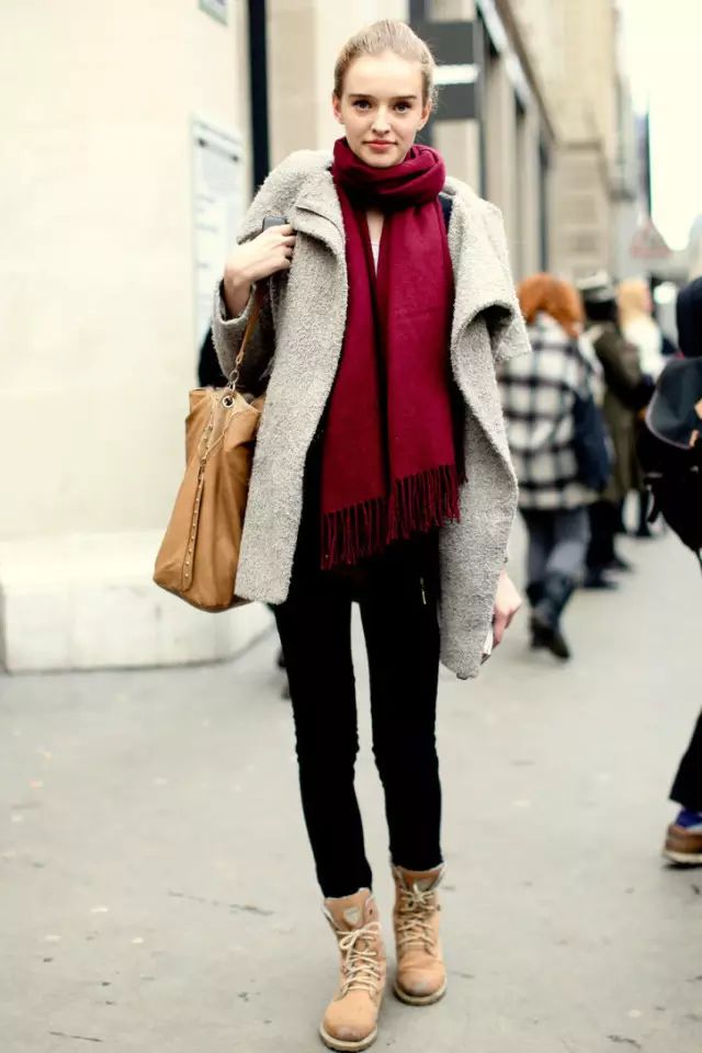 有没有发现红色围巾可以轻松打破沉闷,一身的冷色调也无妨,立马提亮你的整体造型。