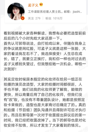 网友的态度也实在是孟子义有前科,擅改妆发不是第一次了。