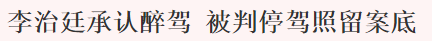 除此之外,李治廷还被抓到醉驾被吊销驾照。