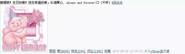 2014年9月16日,李治廷发微博回应范冰冰幸福快乐,永远开心!