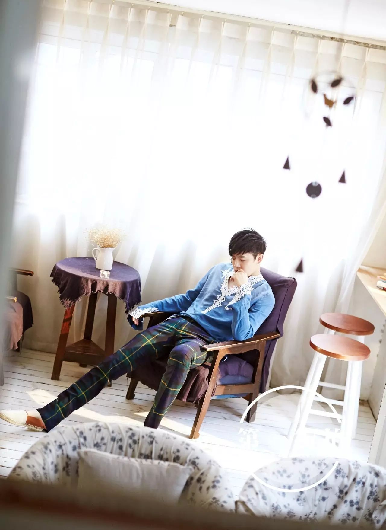 身穿复古钩花衬衫犹如王子般静静地坐在那儿,风度翩翩,简直就是一道“迷人风景线”~