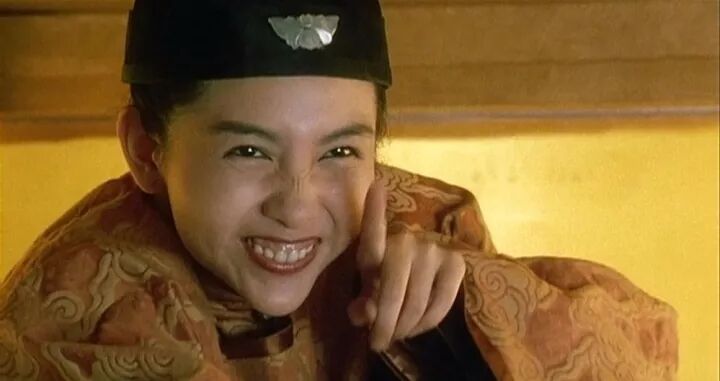 一开始穿着男装出场的建宁公主就奠定了鬼马搞笑的基调,而在她貌似单纯鬼马的笑脸之下,也隐藏着一个公主的霸道和豪气。建宁公主和韦小宝是不打不相识,看到这个竟敢对公主动手的小太监,她觉得太好玩了,还引他和哥康熙认识。第二次见面,练了抓波龙爪手的韦小宝引起了她的高度注意,等鳌拜突然进宫,躲在桌子底下的建宁公主一把抓住韦小宝下面的表情堪称经典,那种呆萌可爱绝对是发自天然,配上鸟叫的背景声更是绝妙。