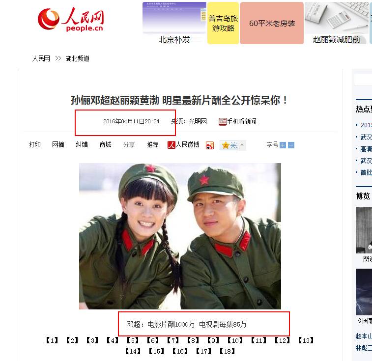 邓超的片酬则为电视剧85万每集,电影片酬1000万。