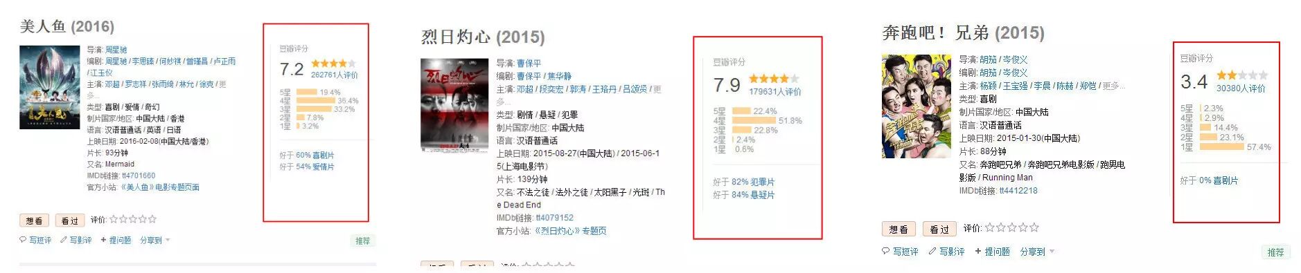 豆瓣评分分别是:7.9分、7.2分、3.4分