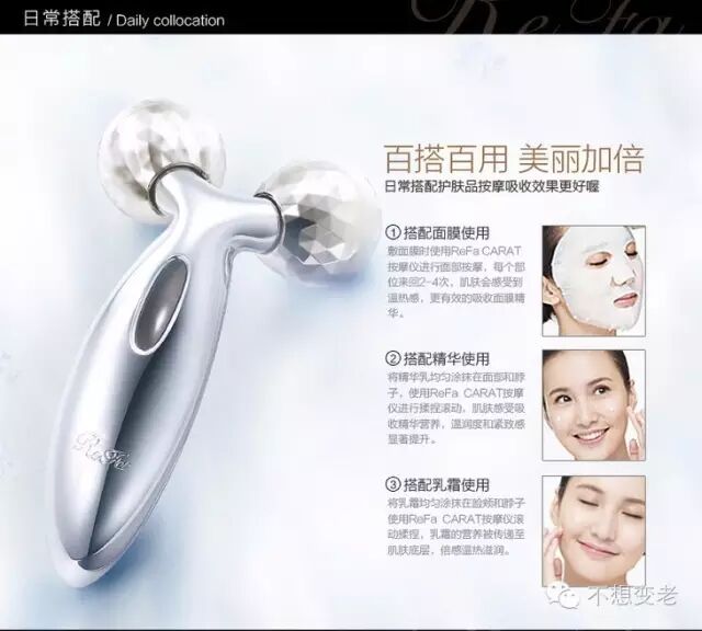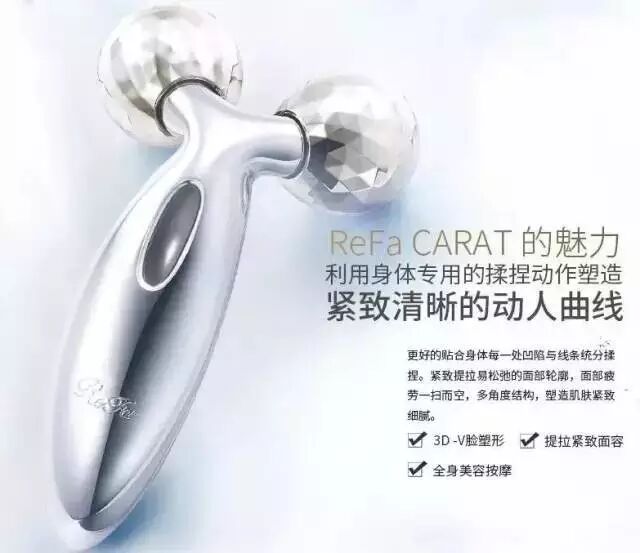ReFa产生与生物电流相似的微电流,独特的Y字双球形设计,推拉皮肤运动按摩,以达到瘦脸瘦身、提拉紧致的美容效果。