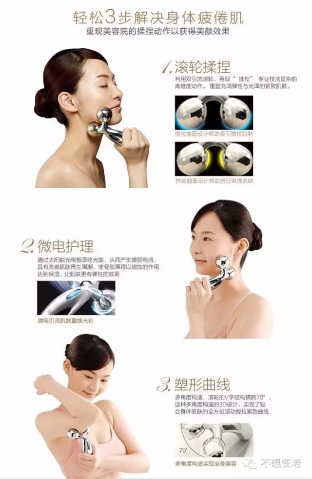 通俗点说就是没事拿出来滚滚脸,用太阳能面板晒晒太阳或者灯光吸热,不用充电,通过微电流的刺激,激活增加皮肤的胶原蛋白。
