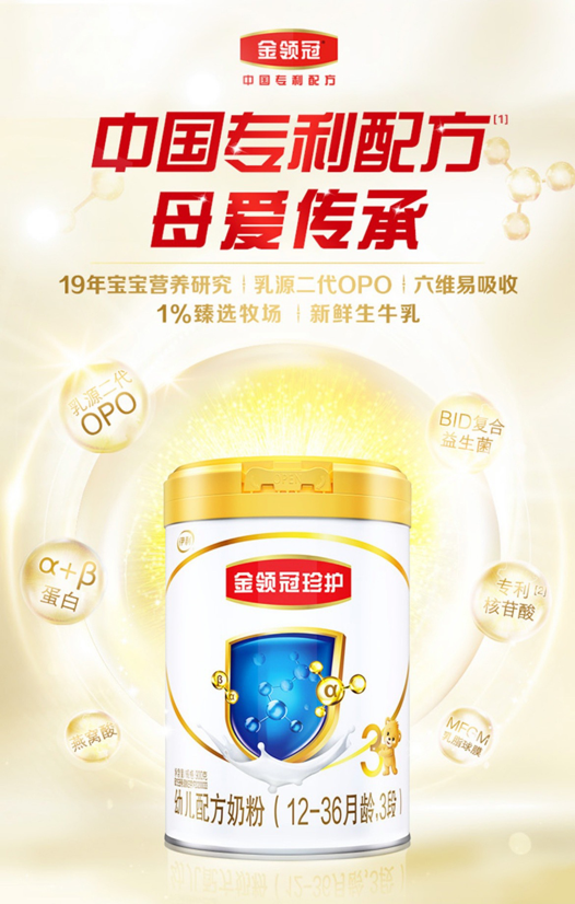 这也是金领冠十九年来一直坚持不懈地探索才有的结果!目前这些创新性的配方已经全面用于了伊利金领冠系列产品中,其中就包括了明星产品金领冠珍护。