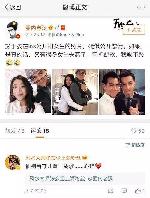 这一消息一出来,网友们又炸了。那要是彭于晏公开恋情了,那么就只有胡歌还是单身了。之后网友们就纷纷跑到胡歌的微博去留言,胡歌微博又要再一次的沦陷了。又要开始催胡歌赶紧解决自己的终身大事,毕竟彭于晏都公布恋情辣!快和薛佳凝复合吧!