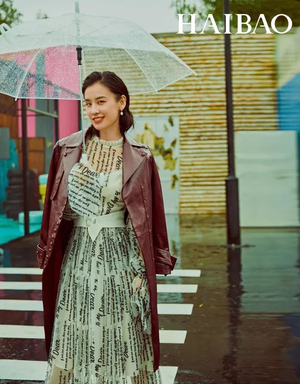 字母连衣裙自带法式的优雅,领口处荷叶边的小细节尽显复古甜美范儿。混搭一件经典的红色长款皮衣,硬朗的廓形中和了长裙的浪漫,娘man平衡,很有高级感。