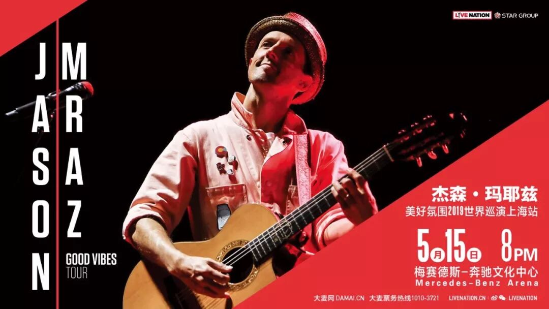 5 月 15 日,Jason Mraz 即将登陆上海,并在梅赛德斯-奔驰文化中心带来“美好氛围 2019 世界巡演上海站演唱会”!喜欢他的朋友点击文末“阅读原文”即可购票。