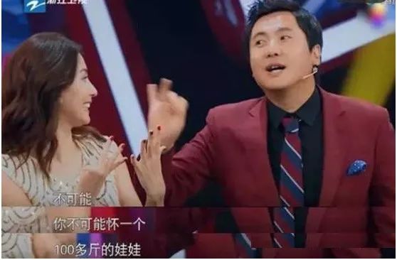 这时候的沈腾不再惊讶,而是直接现场反驳说:不可能,你不可能怀了一个100多斤的娃娃。