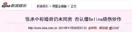爱情甜蜜工作顺利,Selina本来应该过上公主一样的生活,5个月后却发生了爆破事件,她和俞灏明在现场拍戏,两个人双双被烧伤,Selina承受了多少痛苦我们没法想象,但张承中还是在2011年娶了她,举办了盛大婚礼,被外界纷纷夸赞“好男人”、“负责任”。