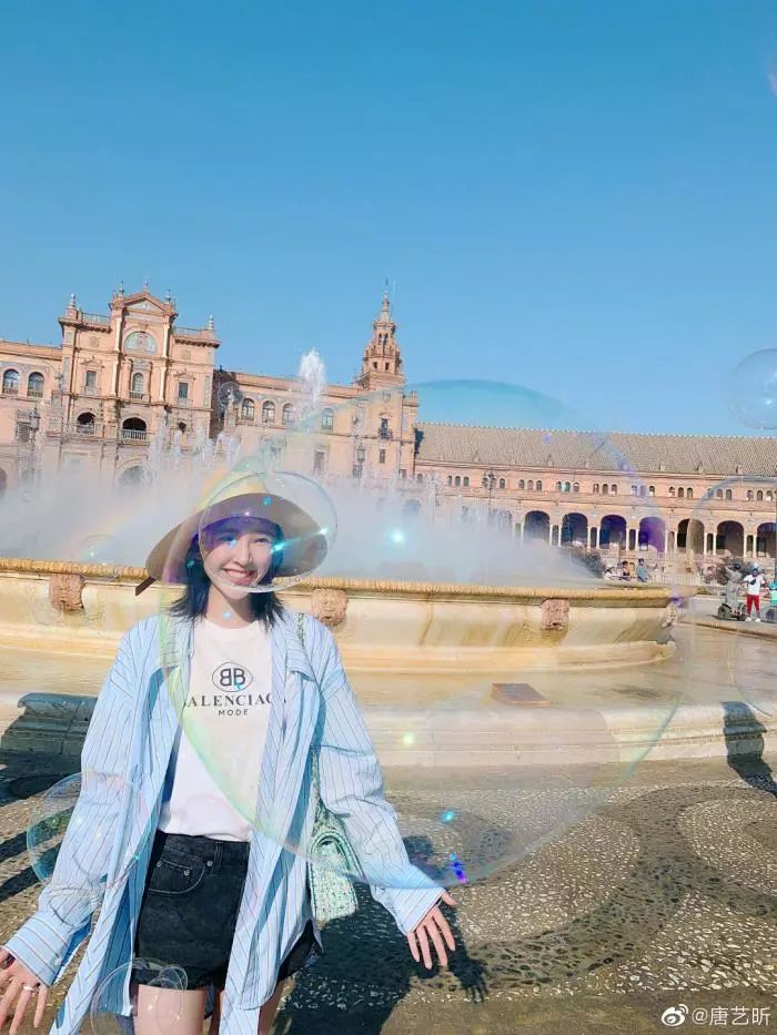 过了一会,司机到达高铁站,一行人走出站外,准备上车,唐艺昕看起来似乎很疲惫,走的慢慢悠悠的。