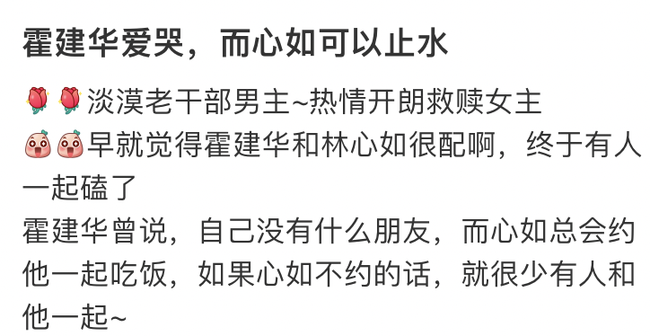 但俩人后来进度还是很缓慢,直到心如被介绍给言承旭,霍建华急了才开始行动?
