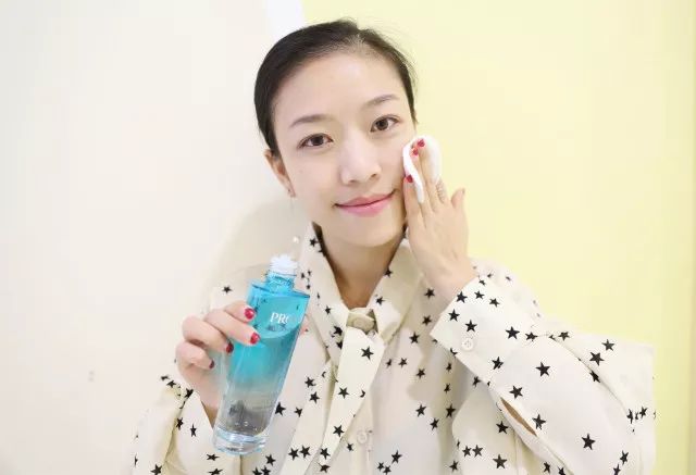 洁面之后,把珀莱雅大溪地水漾芯肌透润水倒在化妆棉上,轻轻的擦拭全脸,注意到下巴,鼻翼等细节的地方也要照顾到~