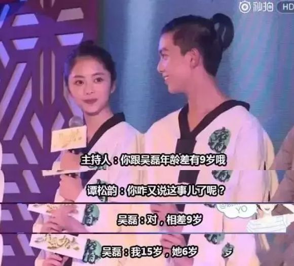 15岁的时候,吴磊和谭松韵一起演了《旋风少女》,主持人说他们之间年龄差有9岁,吴磊是这么回答的,