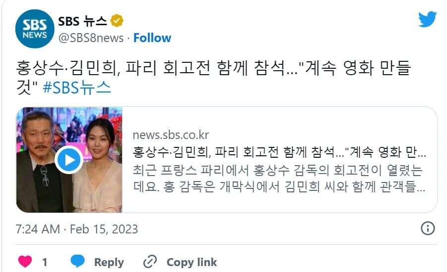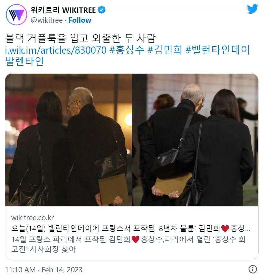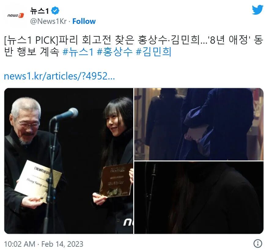 洪尚秀和金敏喜这段不被认可的恋情曝光后,两人不再躲躲藏藏,多次在公众面前大秀恩爱,韩国本土接受不了,那就出国,因此媒体拍摄到的他俩牵手照大部份都是在国外发生。最近两人因为要参加柏林电影节而前往欧洲,并在法国巴黎举行了「洪尚秀导演前作回顾展」,一起问候前来参展的粉丝、影迷。