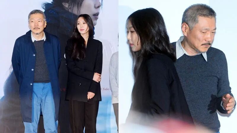 导演洪尚秀和演员女友金敏喜一同出席了在法国巴黎举行的影片回顾展。