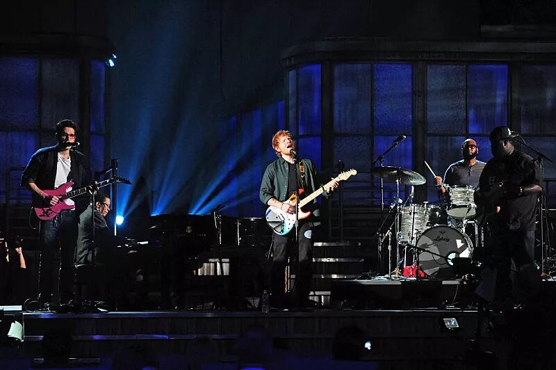 John Mayer 与 Herbie Hancock 同台,中间为 Ed Sheeran