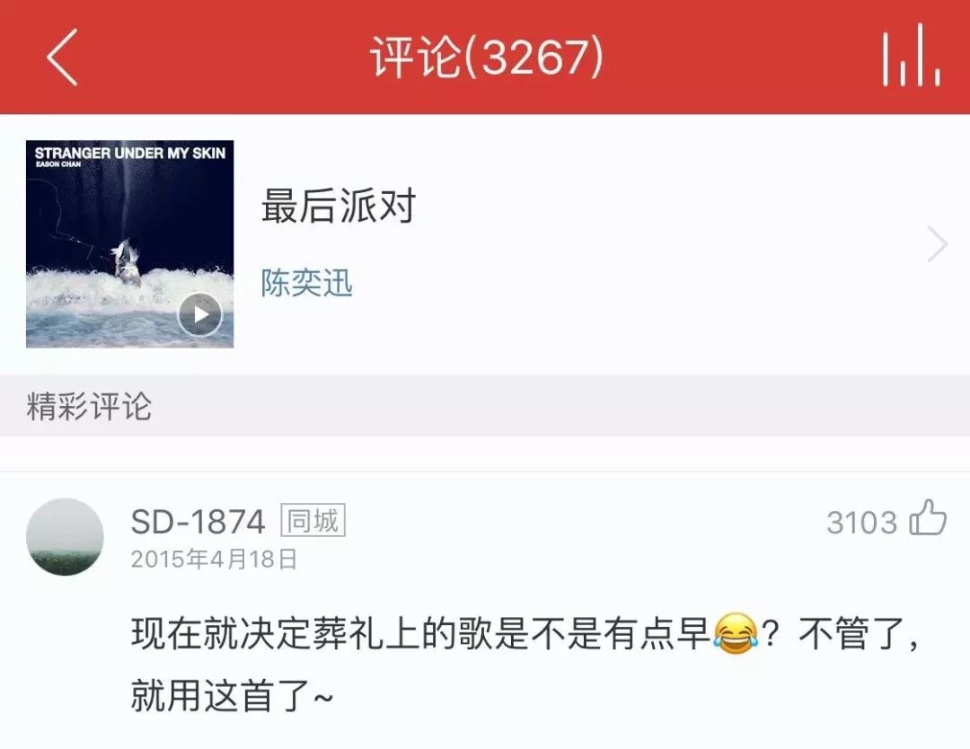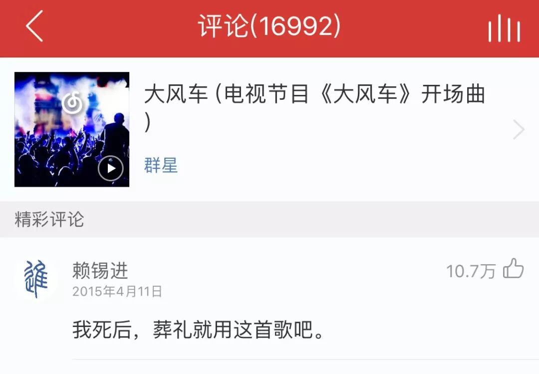 在歌曲评论区最能发现,不少人早已选好了自己葬礼放什么音乐。最意想不到的是这位说葬礼上要用《大风车》开场曲,获得了十万多点赞。