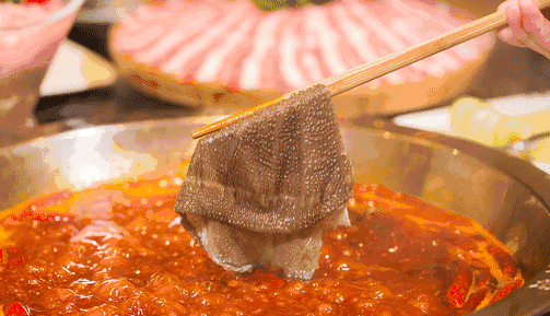 毛肚薄薄的一片,七上八下微微打卷就能吃了