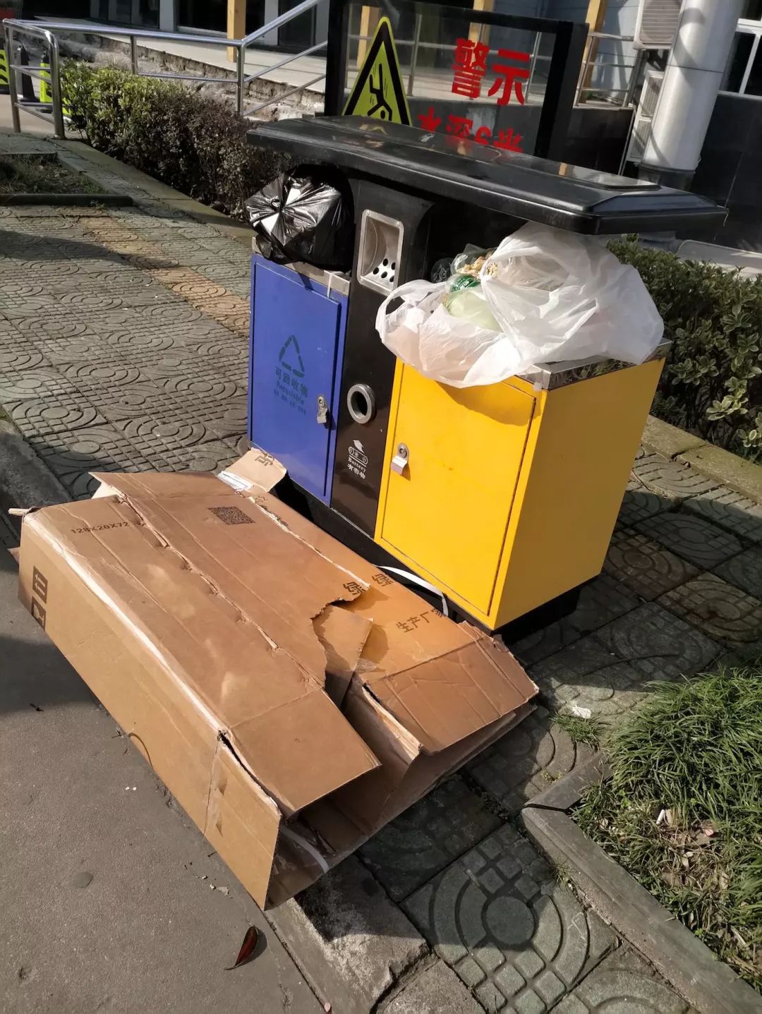 新学期,同学们的新书都到了,但拆下的包装却凌乱地堆在垃圾桶的旁边。这不仅占据了大量的空间,而且影响我们校园环境的美观。