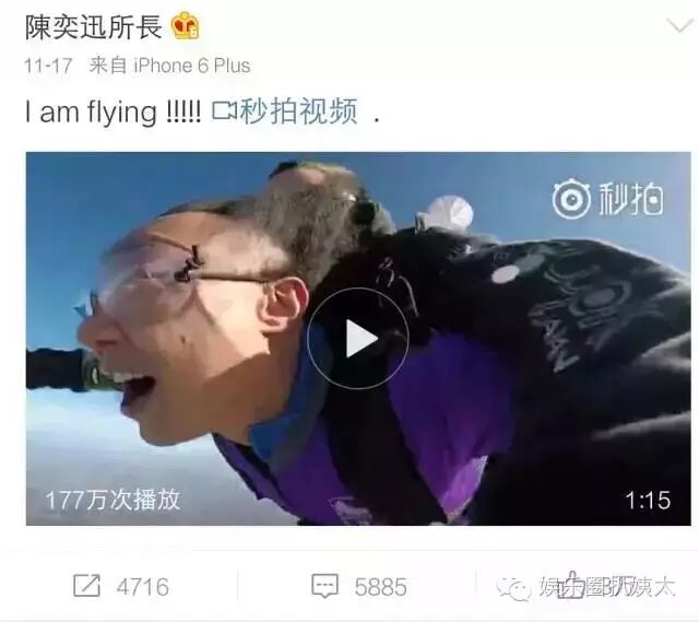 视频里陈奕迅比开演唱会还兴奋,一直在尖叫,看得出完全没有压抑自己的天性。